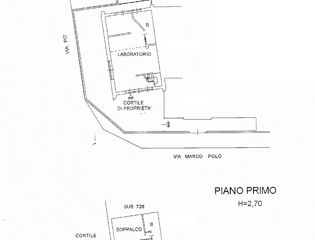 Il laboratorio presenta un bagno al piano terra e con scala interna si collega al soppalco utilizzato come ripostiglio e con un secondo bagno.