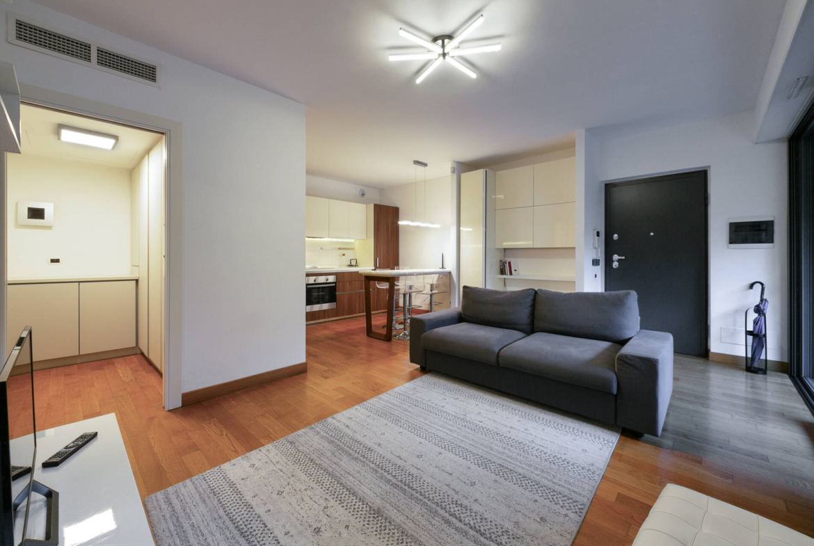 Vicinanze City Life e a 800 metri dalla fermata Portello linea M5, proponiamo in vendita ottimo bilocale al piano terra con giardino in classe A.