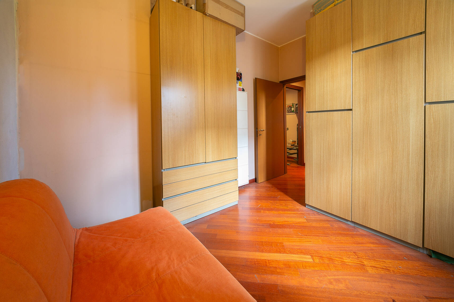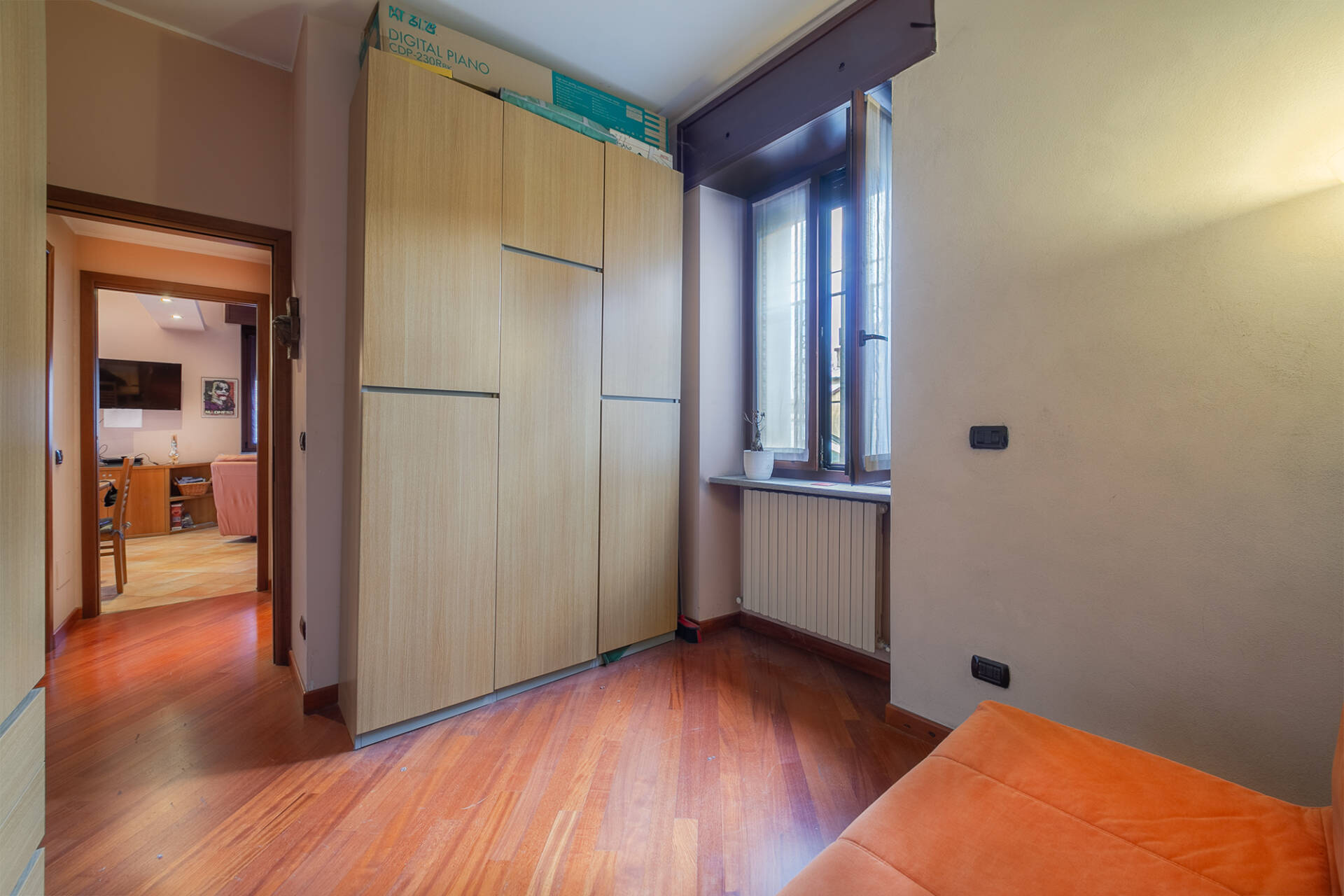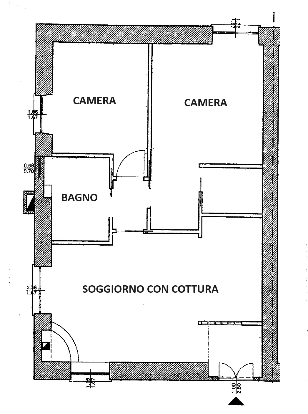 L’appartamento si compone di ingresso, soggiorno con angolo cottura, disimpegno che conduce alla zona notte con due camere, di cui una con guardaroba, e bagno finestrato.